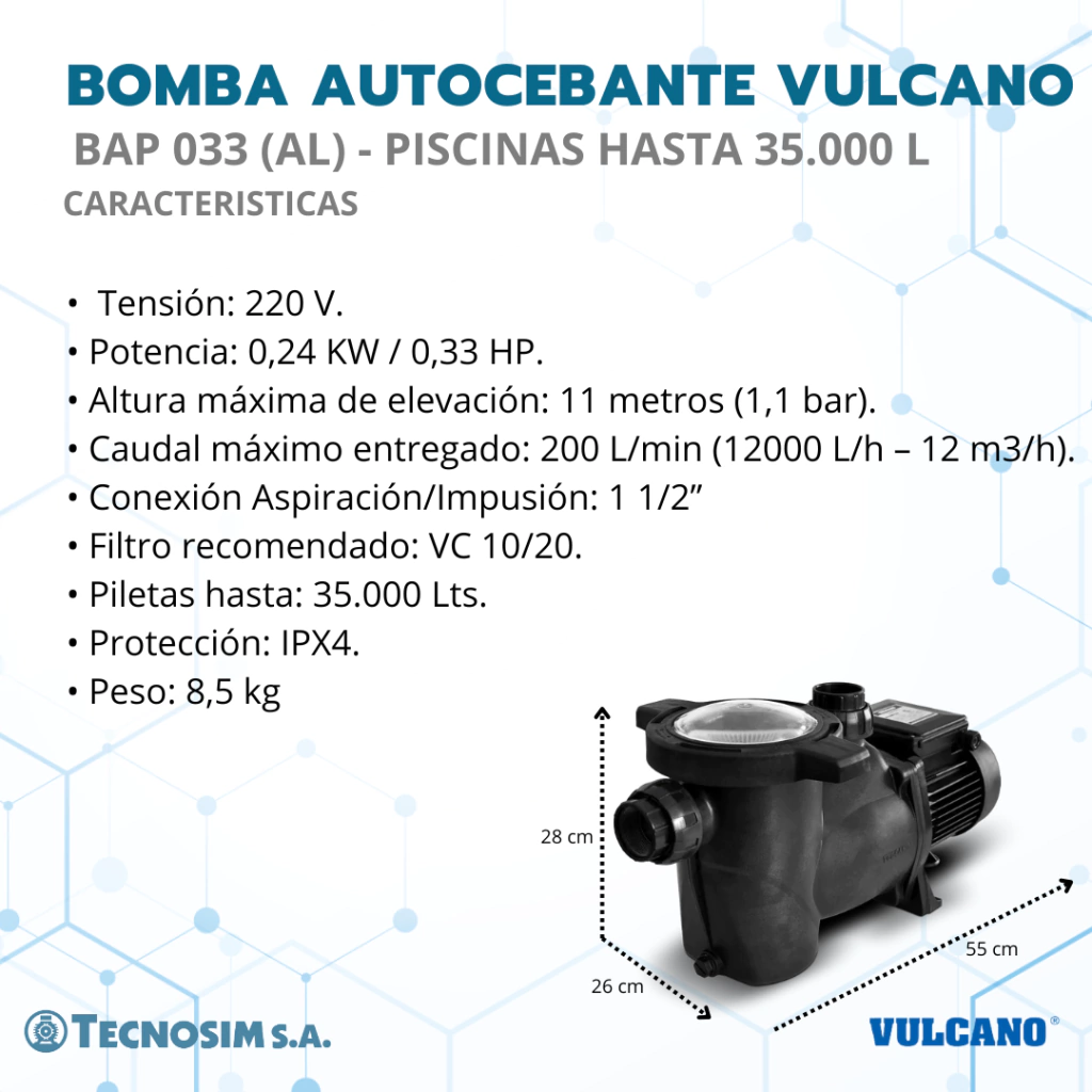 Bomba Autocebante Piscinas Vulcano BAP 033